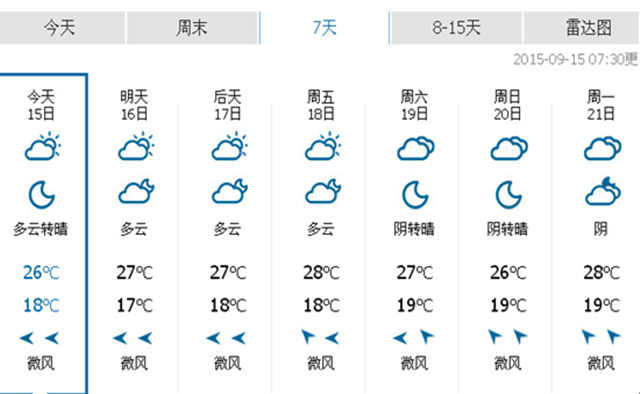 雖然氣溫有所回升,但從天氣預(yù)報(bào)來看,早晚溫差仍比較大。明天,最低氣溫17℃-18℃,最高氣溫26℃左右。后天,最低氣溫17℃-18℃,最高氣溫27℃。一天當(dāng)中,忽冷忽熱的感覺仍很明顯。